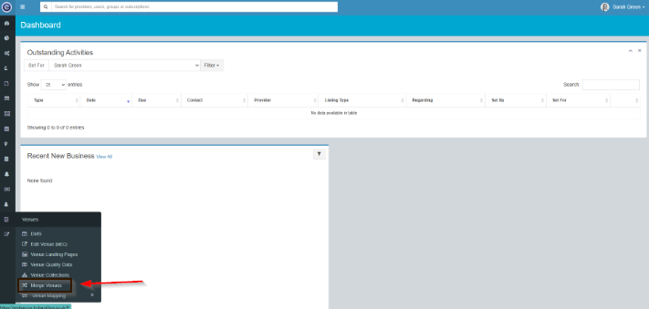 1. Once in Endeavour please click on the Venues tab and click on Merge Venues