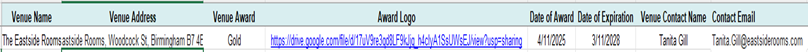 The accreditation will then appear on the venue’s profile as shown below.